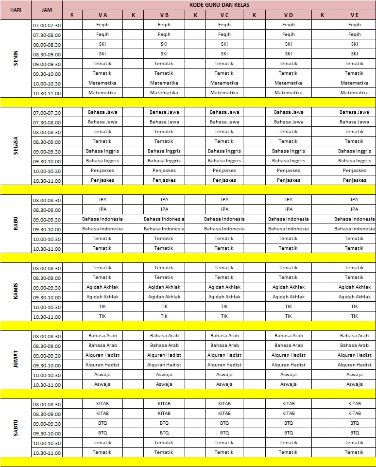 JADWAL PELAJARAN KELAS 4 TAHUN AJARAN 2021-2022